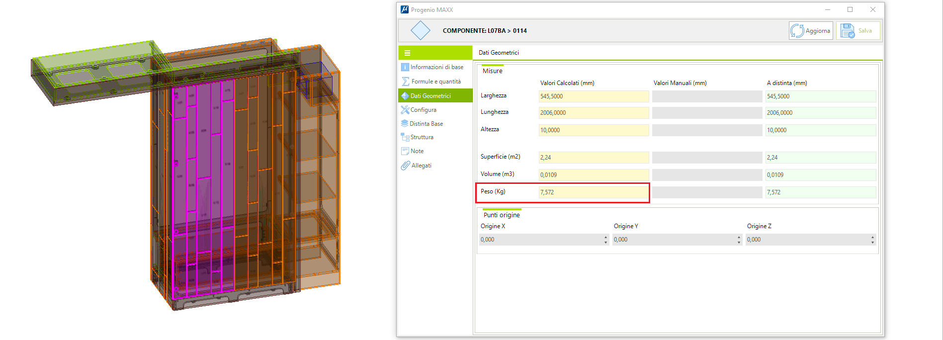 Con la sua tecnologia, il software PROGENIO MAXX offre la possibilità di calcolare automaticamente il peso analitico del mobile, tenendo conto di ogni componente, materiale, supporto, essenza o lavorazione eseguita. Nella nautica in cui ogni imbarcazione deve rispettare determinati standard di prestazioni e consumi, tale funzione diventa fondamentale offrendo al progettista la possibilità di effettuare simulazioni preventive (senti anche cosa ne pensa l'esperto Rino Zaccaro di Pad Project).